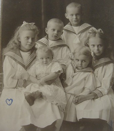 Die Kinder der Familie ca. 1903: ganz links Maria, ganz rechts